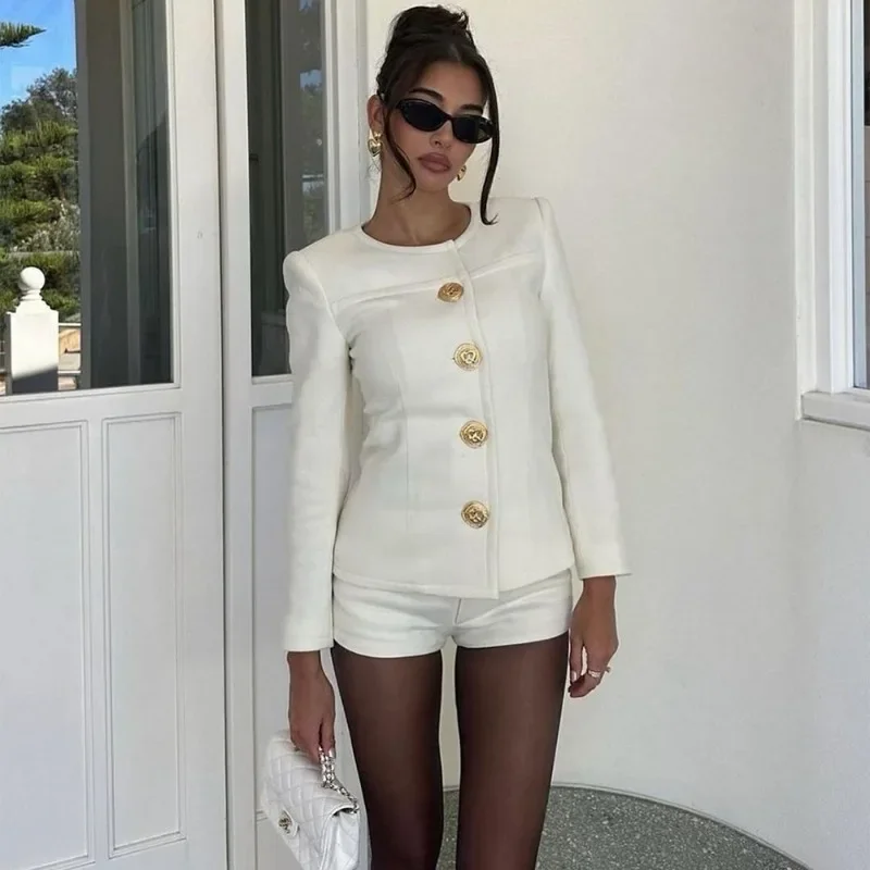 Стильний та елегантний комплект, що складається з довгорукавної куртки на ґудзиках та високоякісних шортів. Ідеально підійде для вечірки чи прогулянок, додаючи шарму вашому образу. Замовляйте та сяйте!