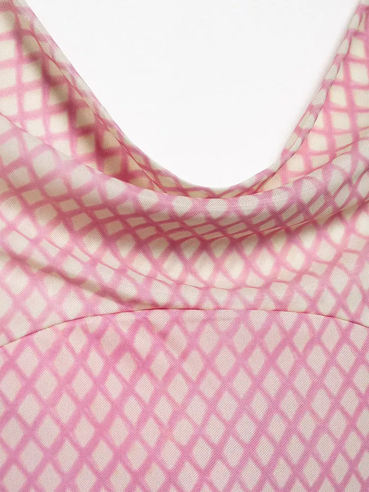 Витончена сукня міді довжиною до середини литки з ефектним принтом. Модель з округлим вирізом, тонкими бретельками та відкритою спиною створює жіночий та трохи сміливий образ. Облягаючий силует підкреслює фігуру, а легка пружність тканини забезпечує комфорт. Ідеальний вибір для вечірніх виходів, весіль або особливих подій.
