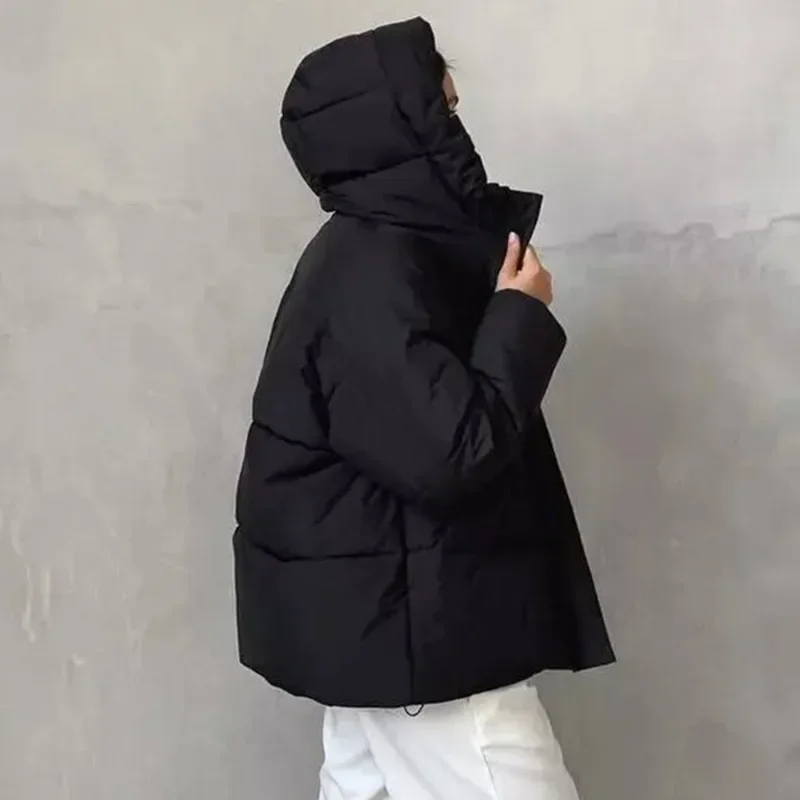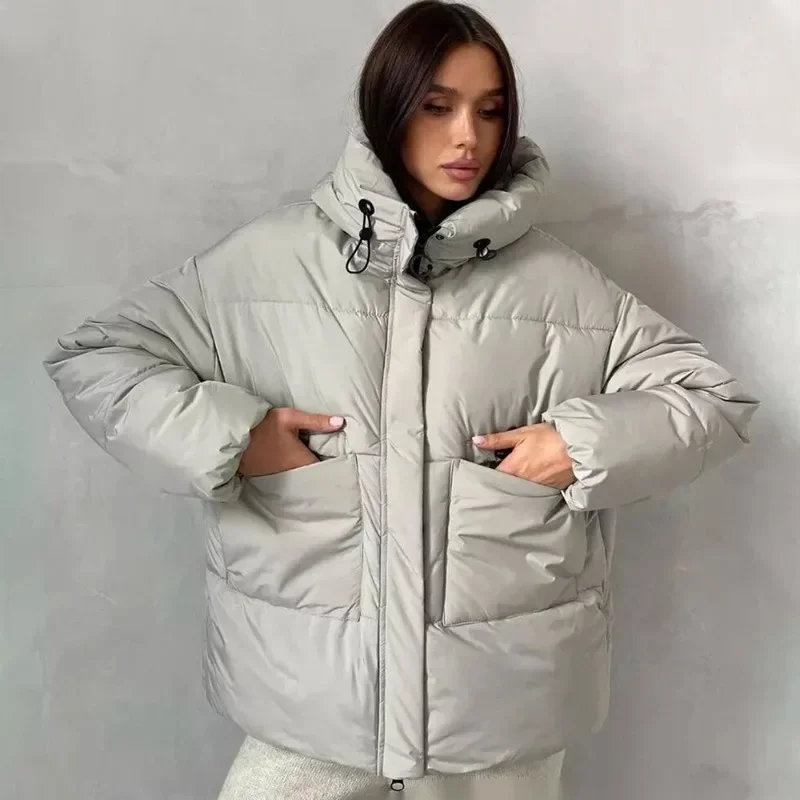 Тепла зимова куртка з зручним капюшоном, довгими рукавами та стильним V-подібним коміром. Вільний крій та практичні кишені забезпечують комфорт, а товста тканина ідеально захищає від холоду. Ідеально підходить для роботи та прогулянок у прохолодну погоду.