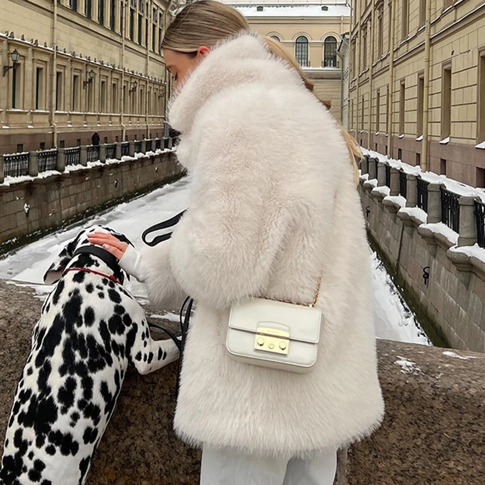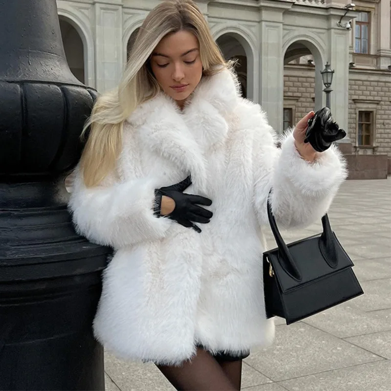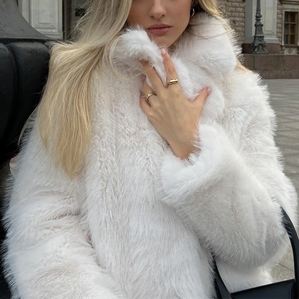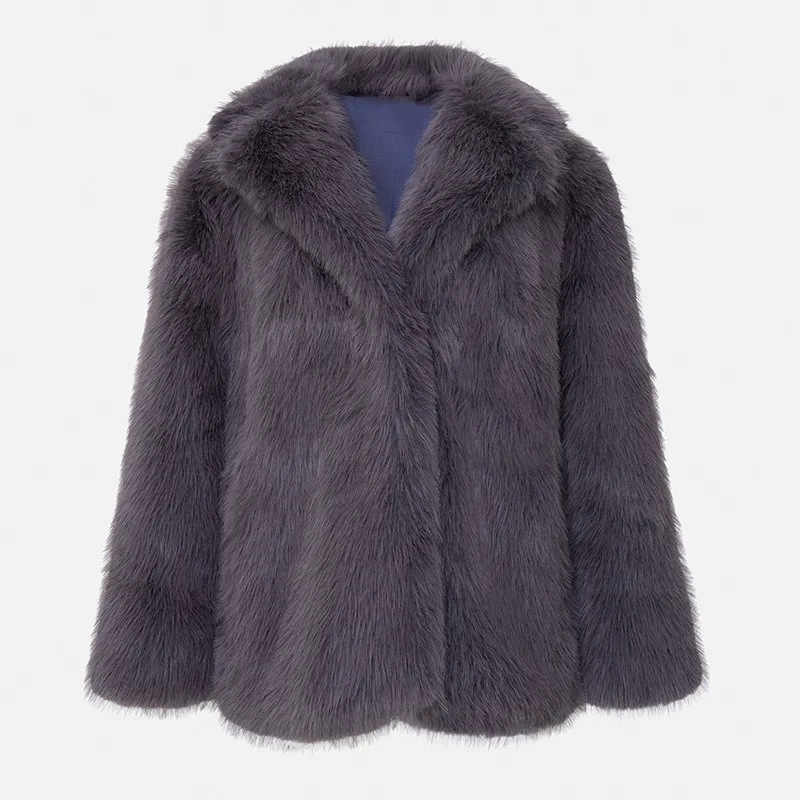 Тепла і стильна куртка зі штучного хутра ідеально підходить для прохолодної погоди. Елегантний V-подібний комір, вільний крій і сучасний дизайн роблять її універсальним вибором як для офісу, так і для повсякденних образів у осінньо-зимовий сезон.